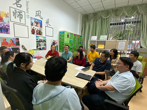 汪大木校长对深圳市沙井职业高级中学作了简短介绍,对中专学校的德育、心理健康教育的成就给予高度评价。他指出,中专的德育管理精致,团队教师年轻有活力,而且还非常敬业,值得学习借鉴。最后,汪大木一行参观了“名班主任工作室”和心育中心,再次交流和分享。