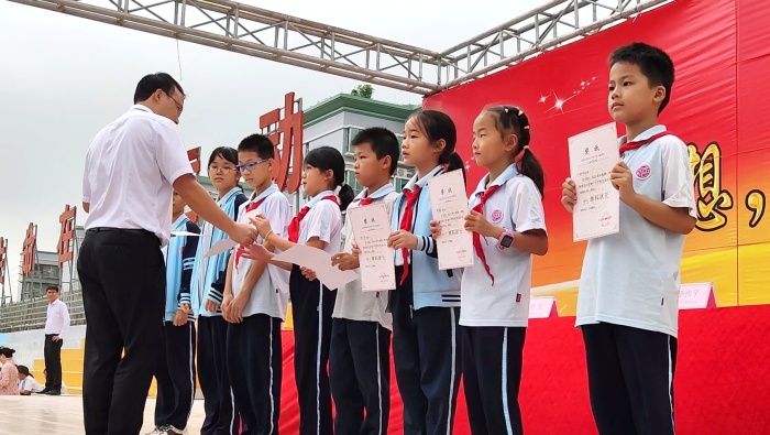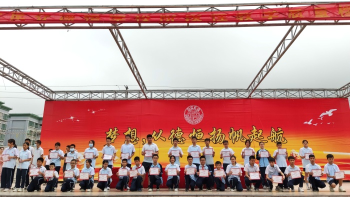为了表彰优秀,鼓励先进,树立典型,营造浓厚的学习氛围,进一步调动全体学生学习的主动性和积极性,2021年10月21日上午,中山民众德恒学校义教部2021—2022学年第一学期第一阶段学情检测总结暨表彰大会隆重召开。学校副校长邓新军,义教部全体行政以及义教部全体师生参加了此次大会。大会由校团委陈婷书记主持。