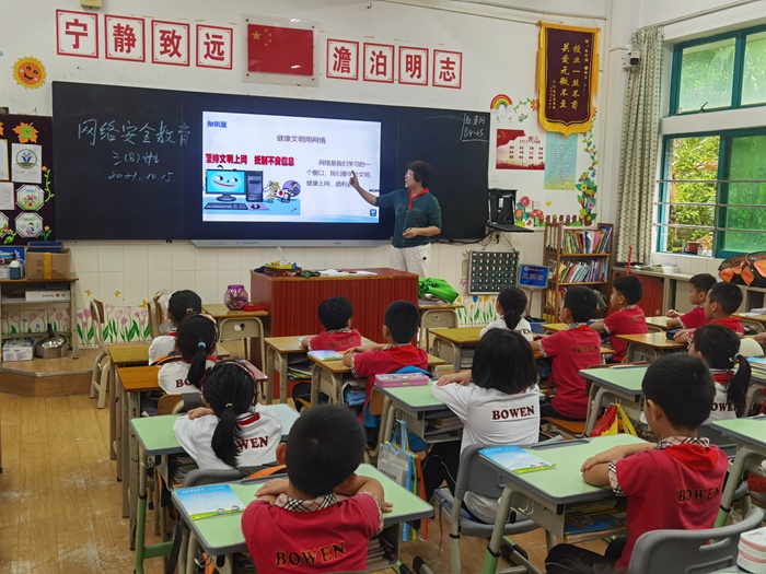 10月11日,广东博文学校利用《中山教育信息港》的“2021年国家网络安全宣传周”专题资源,组织同学在信息课学习相关的网络安全内容。通过学习《中小学校园网络安全知多少》《在线教育网络安全23事》《中小学信息技术教学中如何开展网络安全教育》《网络安全歌》等内容,培养学生的网络安全素养,养成安全上网意识。