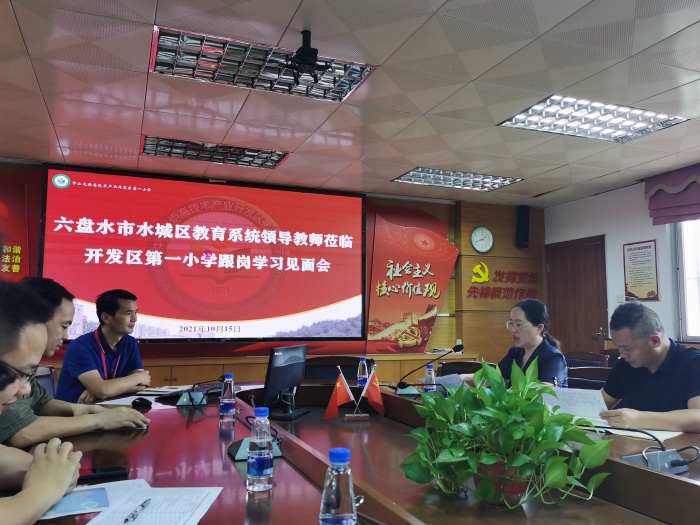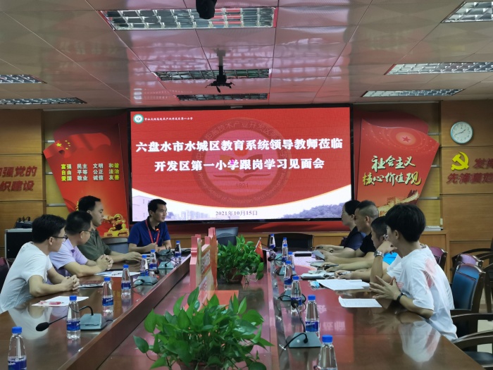 10月15日一早,贵州省六盘水市水城区3位骨干教师到达火炬区第一小学,根据两地交流帮扶框架协议,跟岗教师将在学校进行一个月的学习交流,学校蔡长青校长及全体行政热情地迎接远道而来的客人,并在学校会议室里举行了简单而又温馨的见面会。