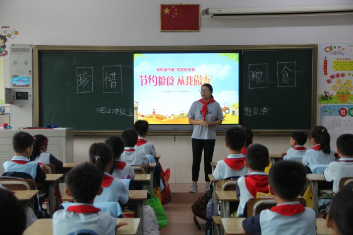 在各班主题队会上,老师展示了贫困地区粮食稀缺的现状以及社会上一些人浪费粮食的现象,两种对比,让队员们从内心体会到粮食的来之不易以及“谁知盘中餐,粒粒皆辛苦”的深刻内涵,并自觉承诺从现在做起,从自身做起,节约每一粒粮食,抵制和反对浪费粮食的行为,养成爱粮节粮的好习惯。