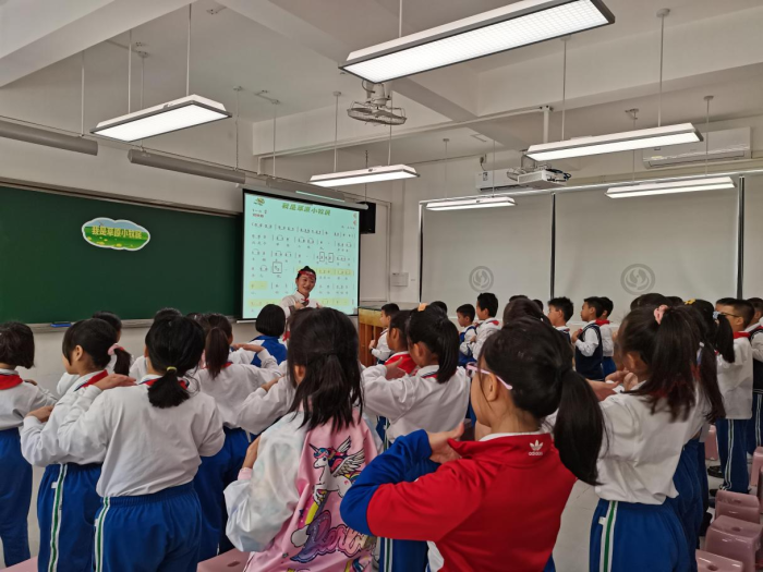 周金波老师执教三年级《我是草原小牧民》一课,在镇区比赛中以优美生动、富有激情的教态赢得了评委的一致好评。精心设计的视频导入,环环相扣的教学过程,使得学生达到了深度学习的教学效果。在歌曲的结构教学方面采用独特的教学方法,运用图谱、歌唱舞蹈与双响筒创编节奏的穿插式教学,使得学生快速准确地突破了本节课学习的重点与难点。