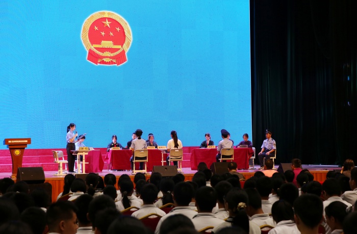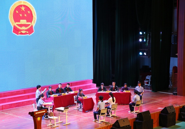 “现在宣布开庭!”随着法槌落下,庭审拉开帷幕,“审判长”有条不紊地审理案件,“公诉人”义正词严地指控犯罪,“辩护人”针锋相对、据理力争……10月29日,火炬区青少年法治教育模拟法庭暨《民法典》普法讲座走进卓雅校园,进一步加强未成年人法治宣传教育。