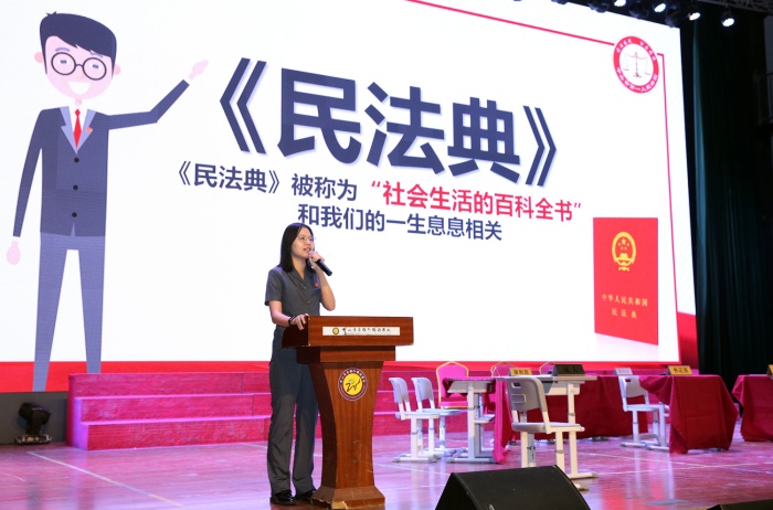 为了激发同学们对学习了解法律的兴趣,中山市第一人民法院审判管理办公室法官助理吴娟欢为大家开展民法典普法互动活动。同学们踊跃举手发言提问,现场气氛热烈,掌声不断。