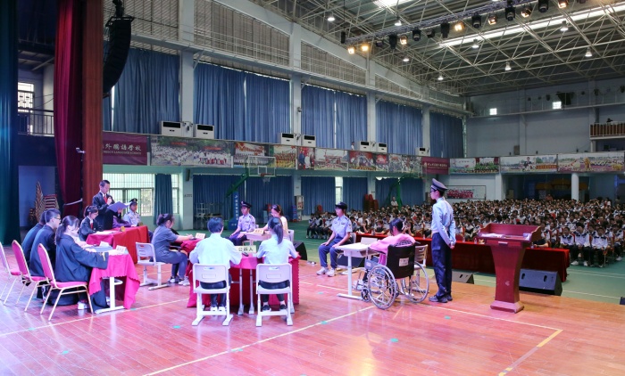 模拟法庭”结束后,邓文辉法官为本次模拟法庭做现场指导,让现场同学们明白“‘未成年’不代表可以肆意妄为”,为同学讲解校园早恋的危害,希望同学们珍惜校园生活,珍惜身边同学,珍惜自己美好的青春。