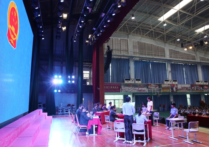 模拟法庭上,卓雅外校的学生分别饰演了审判长、审判员、人民陪审员、书记员、公诉人、辩护人、被告人、法警等角色,详细还原案件的审判过程。台下的同学们“零距离”感受法庭的威严和法律的严肃,通过观看这样一场“真实”的审判,大家深刻认识了寻衅滋事罪的危害和后果。