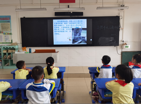 活动中,老师们给同学们分享了通用英语的新加坡用中文书写标语提醒中国游客讲文明以及国庆节后天安门广场随处可见口香糖残迹的小故事,来告诉同学们讲文明、懂礼貌的重要性。在老师的引领下,同学们坐姿端正、全神贯注,再次温习了个人礼仪、尊师礼仪、课堂礼仪、排队礼仪、升旗仪式、文明就餐、爱护公共场所等各个方面的文明礼仪。