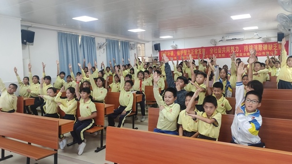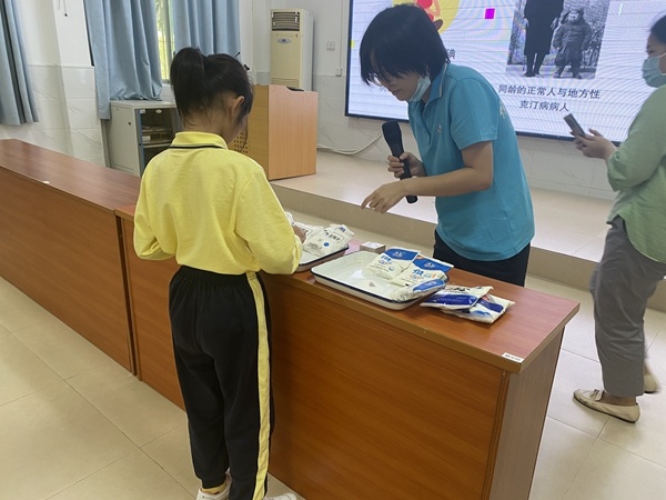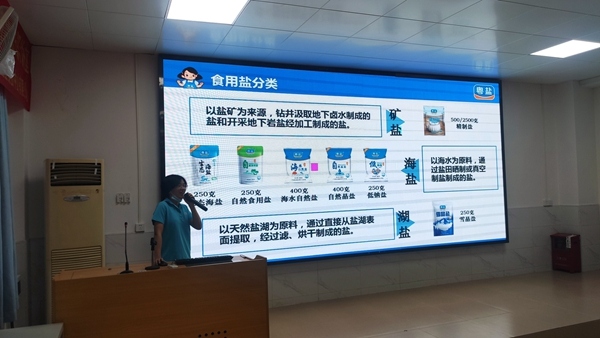 接着,由广东省盐业集团中山有限公司的老师介绍如何“安全用盐 健康生活”,在讲授的过程中让学生了解到食盐的分类,如何区分真假盐,如何科学用盐。在真假盐辨别的环节中,在场的老师通过活动的形式教会了学生可以通过看包装两侧折痕、查看镭射防伪标识等方法进行区分,在现场中还邀请同学一起做起了科学小实验,学生们反应热烈,参与度极高。讲座结束后,为了加深学生的理解,现场给每一位学生派发了宣传单和一包小礼物“海盐”,让学生回去一同与家长们分享今天的活动。