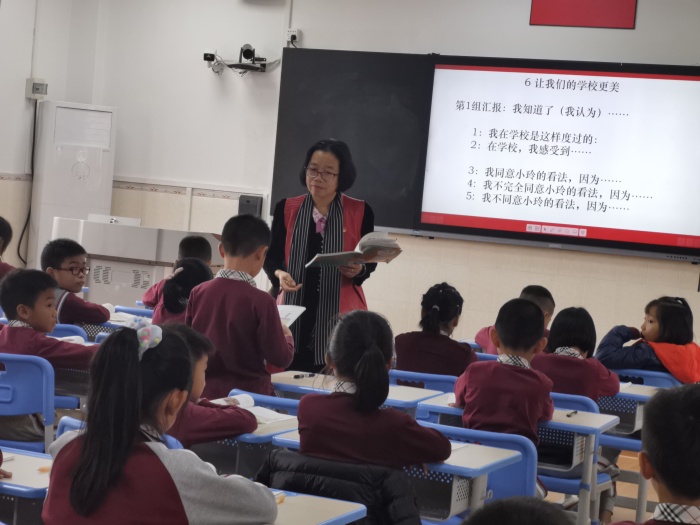 肖志红校长始终认为学生才是课堂的主体,应给学生思考的空间,展示的舞台,因此,这节课始终以学生自学、汇报为主,贴近学生的生活实际。以小组汇报为主的课堂形式,大大提高了道德与法治的课堂教学效率,锻炼了学生的学习能力。