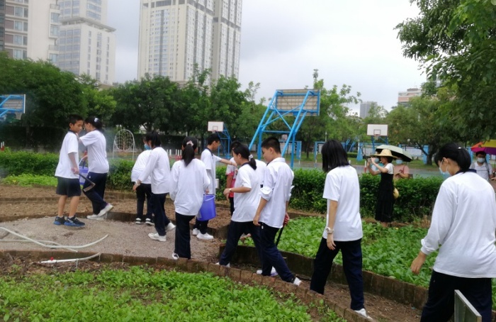 坦洲实验中学的古娜芬老师带来了一节精彩的《菜苗的移栽》公开课。她先带领学生们上了10分钟的理论课,了解菜苗移栽的操作方法和注意事项,然后让学生们以9人为一组自由组队,领取劳动工具,进行劳动分工。学生们兴高采烈地带着工具到学校的劳动教育基地进行种菜劳动。他们有的起苗,有的挖窝,有的种菜,有的浇水,干的不亦乐乎。