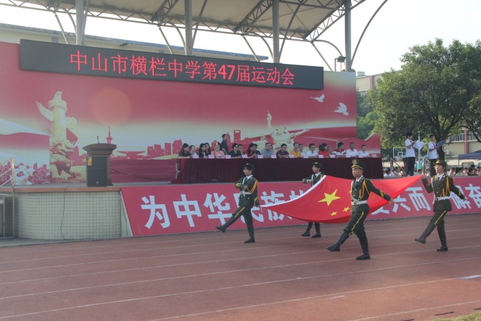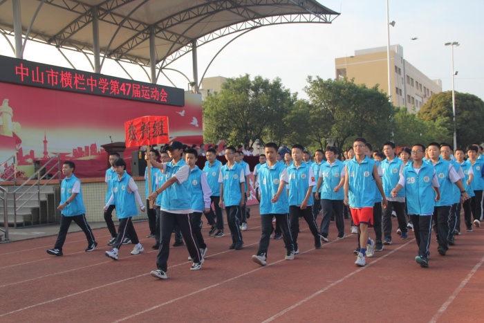 在秋日的艳阳之中,横栏中学田径场锣鼓喧天、彩旗飘扬,学校国旗方阵、校旗方阵、裁判员方阵以及初一、初二、初三三个年级的班级方阵依次走过主席台。各班队伍精神饱满、队列整齐、口号响亮,整齐的班服、各具特色的民族服饰、鲜艳的五星红旗、爱党爱国的横幅标语,充分体现了横中学子的创意、激情和梦想。