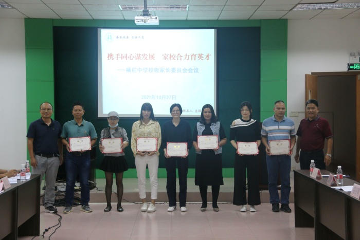 紧接着,会议集体审议通过了新一届校级家委会成员,由黄浩锋担任校级家委会主任;梁少群担任秘书长;杨宝山、黄日明、吴润明、向芹、梁满丽、邱喜鹊担任副主任。并由新一届家长委员会主任黄浩锋先生作了表态性发言。同时,学校也为校级家委会全体成员颁发了聘书。
