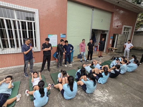 检查组一行还察看了抽测场地,检查了物资准备情况。当来到体育场,正好碰上初一级体育课,学生正在训练仰卧起坐,检查组现场指导了学生动作要领,指出容易犯错的地方。