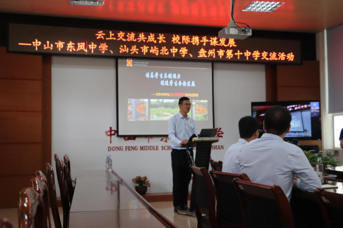 交流活动中,中山市东凤中学刘喜全校长首先致辞。他强调了三校结对帮扶合作交流的重要意义,希望三校可以实现共建共享、互助成长,构筑教育教学事业的同心圆。随后,刘喜全校长、蔡伟洲校长、盘州市第十中学戴震副校长分别对本校的基本情况、师资生源等情况作了全面的介绍。