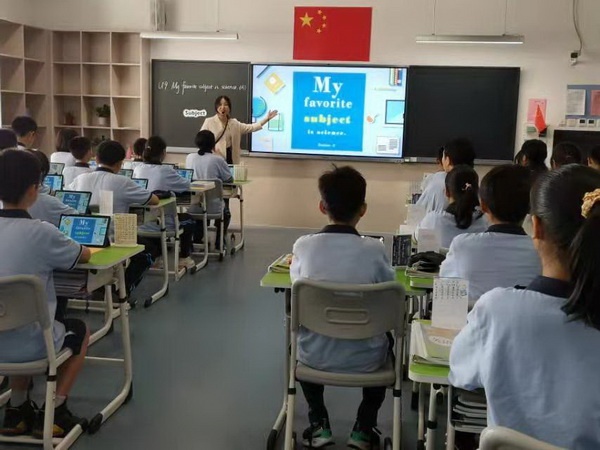 在七年级7班,工作室成员观摩了一节英语课《Unit 9 My favorite subject is science》(Section A)。课堂上,师生们熟练运用平板电脑开展教学互动及评价,先进科技与传统教学有机融合,取得良好效果。