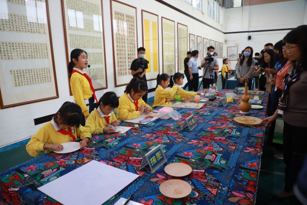 在小导游的带领下,考察团首先来到民和小学体艺馆,参观景泰蓝书画作品。近年,民和小学提出了“高质量发展”的奋斗目标,特别是在落实“双减”政策中,学校为学生提供了扎实而丰富的课后服务课程。随后,考察团驻足观看了师生的活力跑操,并对民和师生朝气蓬勃、奋发向上的精神面貌给予了充分肯定。