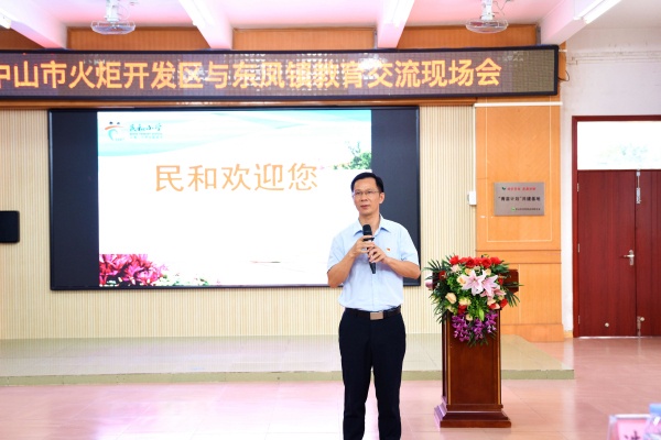 11月4日下午,民和小学迎来了由中山市火炬开发区教育事务指导中心钟海清主任带领的共50多人组成的教育考察团一行。东凤镇党委委员冼嘉涛、镇教体文旅局局长李仕标出席此次交流活动,黄逵明校长带领民和小学全体行政热情接待宾客并进行深入交流。