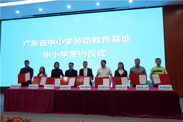 与会人员实地参观考察了中山一职劳动教育基地建设后,参加了横栏镇中小学劳动教育基地挂牌仪式,见证了广东省中小学劳动教育基地中山一职和对接的横栏中学、横栏小学、横栏镇第二小学、横栏镇三沙小学、横栏镇四沙小学、横栏镇华文学校、横栏镇伟智学校、横栏镇港源学校等8所中小学签约仪式。