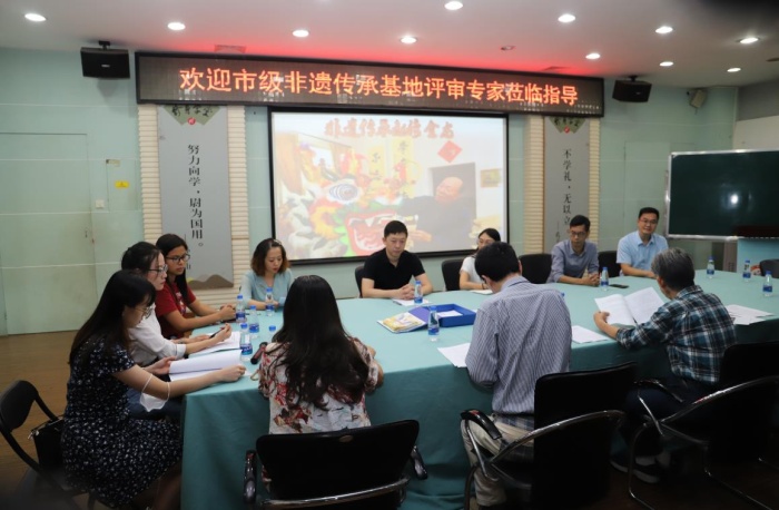 为顺利开展非物质文化遗产传承活动,推动非物质文化遗产项目活态传承与可持续发展,2021年11月5日下午,中山市东区水云轩小学接受中山市文化广电旅游局组织中山市非物质文化遗产保护工作专家组对水云轩小学申报中山市非物质文化遗产传承基地有关情况的实地考察、评审。邀请中山市美协名誉主席梁欣基、电子科大中山学院设计学院教授崔平平、副教授郑泽辉,以及中山市文化广电旅游局、中山市非物质文化遗产保护中心副科长阮静等相关业务负责人莅临本次的评审。