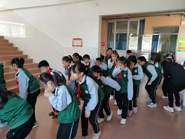 学校德育处高度重视此次活动,制定详细方案并成立了应急疏散演练指挥部,师生认真学习演练方案。演练当日上午9点,火灾警报声响起,全体教师迅速组织同学们进行逃生演练。全体学生听到广播与指令之后弯腰捂鼻,迅速有序地走出教室到达走廊,并根据指引老师的引导,全体师生很快到达避难场集合,中队辅导员清点各中队人数,并检查是否有受伤人员。