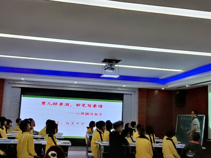 罗广英老师结合板芙本土特色,以选拔红色里溪讲解员为引子,用小兵张嘎的影片细节切入,通过慢镜头再现、下水文细致指导动作、心理描写的具体方法。同方学校刘文静老师巧妙结合时政热点,通过“晚舟归国”与《长津湖》画面指导动作描写。板芙一中王群老师课堂沉稳,通过有梯度的教学设计将重难点一一突破。板芙中学陈军强老师以《男儿辞亲泪,妙笔写豪情》为题,以“泪”为切入点,充分展现写后的指导才能。