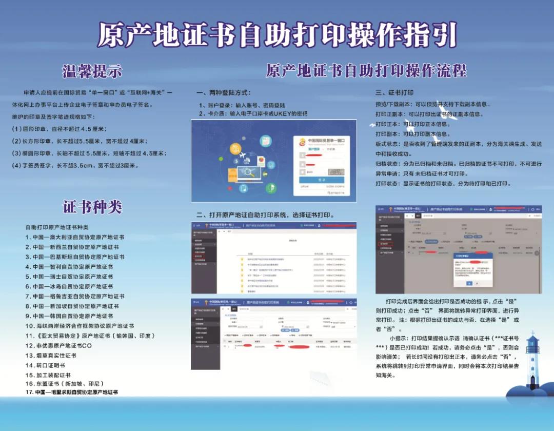 以往,企业需要办理原产地证书只能前往中山海关办事点或者购置相应设备自助打印。对于很多中小微企业来说,要实现企业自助打印原产地证书,必须购买高清彩色打印机和相关耗材。在西区街道政务服务大厅开通自助打印,实现了企业办事“少成本、高效率”,最大程度给辖区企业提供方便、快捷、全面的服务。