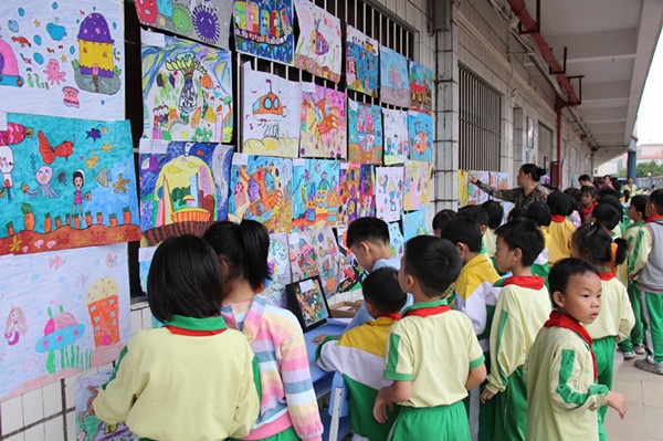 此次科技节活动内容丰富多样,表演精彩纷呈。首先由马成海副校长致词,马成海副校长肯定了学校在过去几年的科技节活动中,学校在市镇中所取得的一系列优异成绩,对同学们积极探索科技世界,勇于发挥想象,参与科技小制作活动表示高度赞扬。同时,马校长更希望同学们能够不断创新,不断进取,从小在心中打下科技创作之心,为科技世界的发展发挥更好的作用。接着,六年级陈小玲同学向全体同学发出倡议,希望同学们积极参与到科技活动中去,培养创新意识,为国家的科技发展“有一分热,发一分光”。活动在科技表演中推向了高潮,学校航模社团的同学们进行了无人机飞行表演,航模社团老师更是为全体师生进行了无人机高空表演,在社团老师的操纵下,拖着长长彩带的无人机,时而直击苍穹,时而呼啸而下,时而上下翻飞,时而高空盘旋。学校林志能老师还带领六(4)、六(6)班学生进行了水火箭发射表演。无论是高空的无人机,还是水火箭的每一次成功升空,都赢得了同学们一阵阵欢呼声和热烈的掌声,仰望天空的小眼睛都闪烁着期盼的光芒,承载着飞天梦想。表演结束后,同学们还参观了科技作品摆展,包括科技创新成果、少年儿童科幻画作品、植物标本及叶脉书签制作作品等。在班级精心布置的摆展前,一件件创新科技成果、一份份精美的植物标本及叶脉书签作品陈列在桌子上,同学们胸有成竹地向评委详细讲解自己的作品,得到了评委老师们的肯定和赞许。