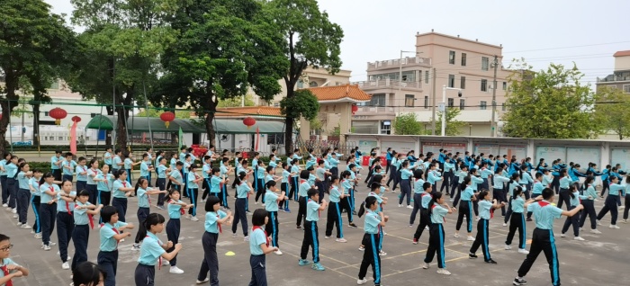周五下午,随着出操音乐响起,全体学生精神抖擞地走向操场。这次广播操比赛以年级为小组进行比赛。伴随着欢快活泼的音乐,学生们舒展腰身,做起早操。各班学生听着指挥,标准地做着各种动作,整齐划一,退操整齐有序。评委根据各班做操动作,队列协调度进行评分,奖励前三名班级。这次广播操比赛,对日后学生上课的精神面貌以及学生上课的自控能力的培养都有一定的促进作用。