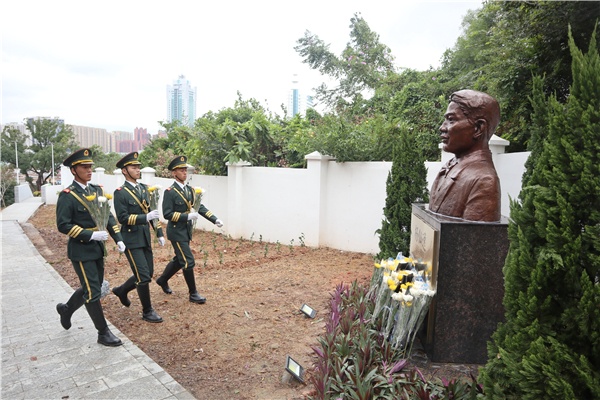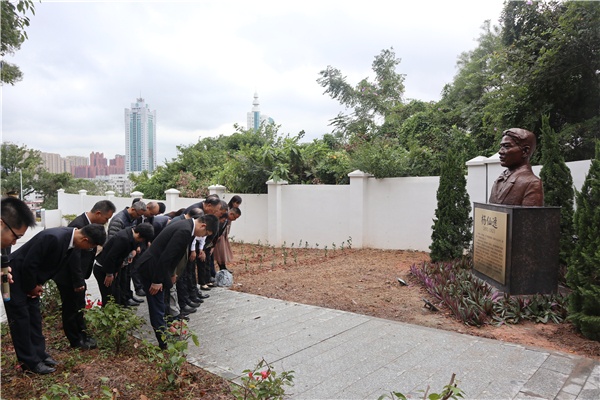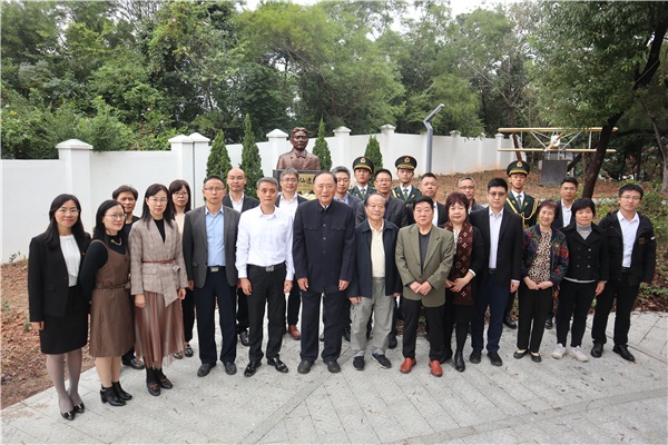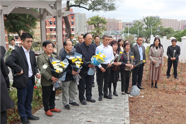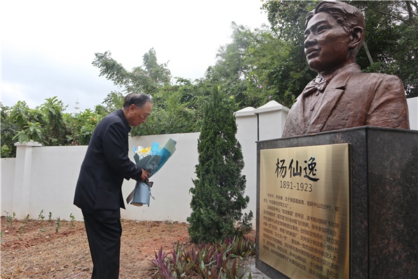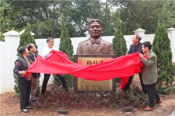 杨仙逸将军铜像揭幕典礼上,孙必胜、程伟夫、何俭强、陈迪秋、刘朝晖五人共同为铜像揭幕。随后,在场人员面向杨仙逸将军铜像鞠躬致敬,瞻仰铜像,向铜像献花,表达对仙逸将军的深切缅怀和无限敬仰。学生代表上前献花敬礼,向铜像许下庄严承诺:“继承和弘扬将军精神,革新图强,志在冲天!”铮铮誓言慰先烈,字字千钧担使命。典礼后,孙必胜一行还参观了西林山航空文化园。