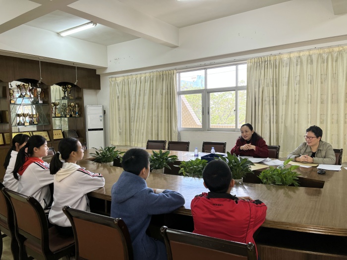 “五项管理”即作业管理、手机管理、睡眠管理、读物管理、体质管理,督查组到校后首先检查了学校关于“五项管理”的实施方案,学校的教师分工表、课程表以及作息表等相关基本材料。接着,两位领导随机抽取了各年级的学生进行访谈,主要是针对学生每天的作业量、学校的作业管理机制、课后服务开展、课后服务素质拓展、每天的体育锻炼时间等基本情况进行了解。同时督查组做了问卷调查,她们分别抽取了初一、初二的10名学生填写调查问卷,更深入地了解学生们在学校生活、学习的基本情况。最后,督查组就有关“五项管理”的一些共性问题跟学校教学处姚建花主任进行了探讨和交流。