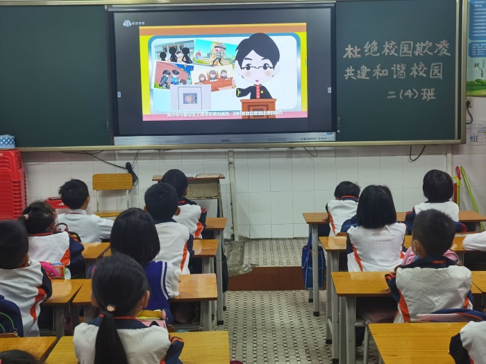 为持续深入做好中小学生欺凌防治工作,2021年11月22日,石岐实验小学利用国旗下讲话向全校师生倡议《杜绝校园欺凌 共建和谐校园》,随后一起观看学习视频。