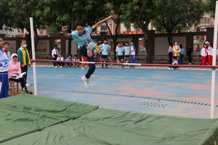 校运会的比赛项目丰富多样。上午是三至六年级组的100米、200米、400米、800米、跳远、跳高、垒球等项目以及1-2年级的趣味运动会。田径赛场上,运动员们如同离弦的箭一般冲向终点,不顾额头上的汗水,表现出选手们顽强拼搏,激烈角逐的体育精神。