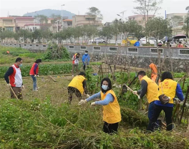 随后,亲子家庭们分成两个组开展环境卫生志愿服务,齐心协力将亲子农场及周边的杂草和垃圾进行清理,并开垦一块空地,种植上香菜等农作物。