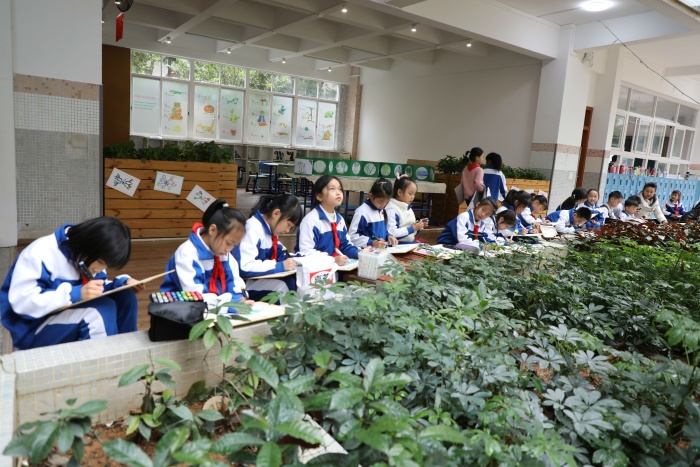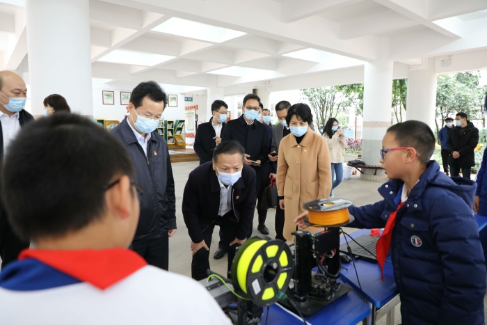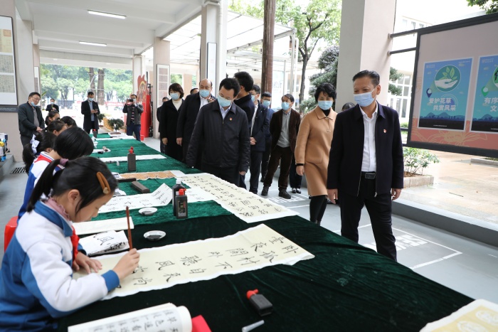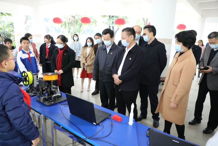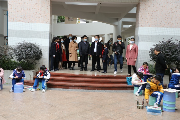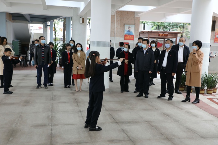 全体与会人员首先参观了石岐中心小学的校园文化和学生社团展示。石岐中心小学展示了学校的党建工作,开展党史学习教育的创新举措,少先队工作,学生校园生活剪影和社团活动。从武术、足球到创客、机器人、航模,再到合唱、绘画、书法……23个社团的活动精彩纷呈。石岐中心小学全面贯彻执行党的教育方针,在“打造适合教育”的办学理念引领下,从秋季学期开学第一天就落实“双减”工作,为学生开设托管服务。为进一步推动“双减”工作落实和提质,学校为学生开设个性化的社团活动并扎实推进,丰富了学生的校园文化生活,提升了学生的个人综合素养。这次展演充分展现了学生朝气蓬勃、奋发向上的精神风貌。