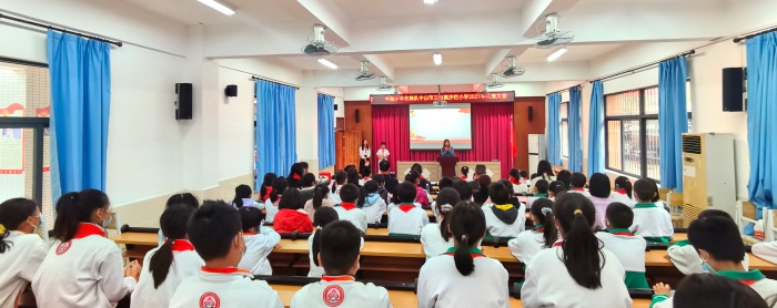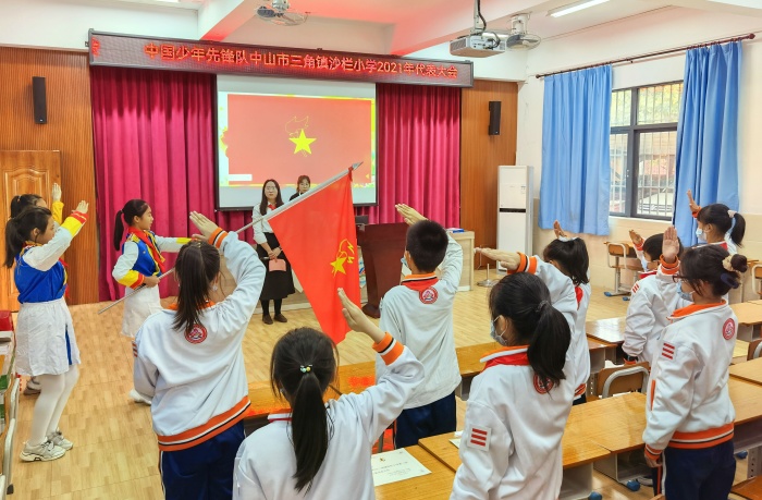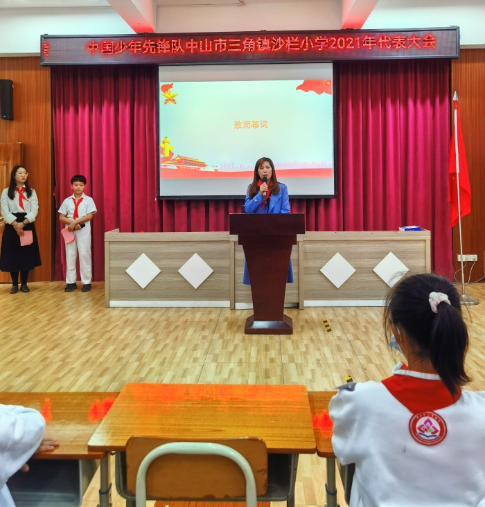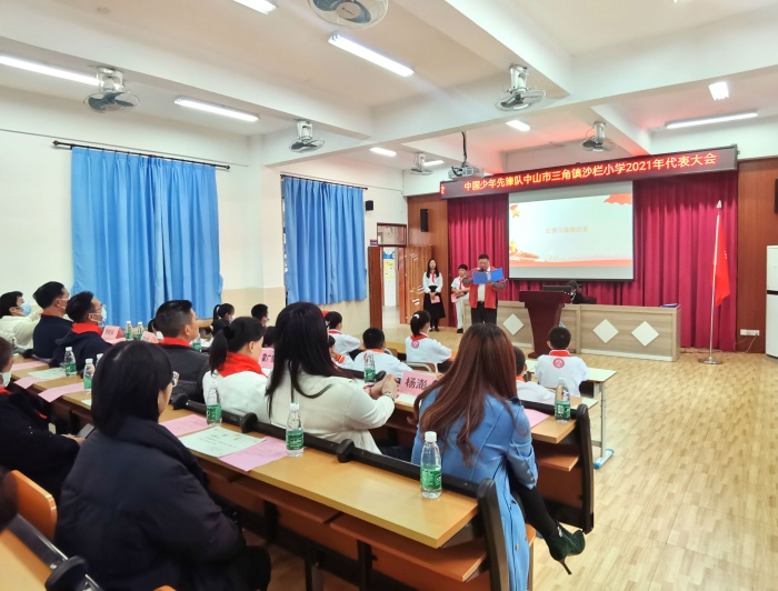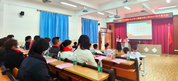 12月20日,中国少年先锋队中山市三角镇沙栏小学2021年代表大会在沙栏小学一楼阶梯室召开。中山市三角镇团委副书记、少先队总辅导员许嘉天老师,沙栏小学党支部书记崔焕英校长、副校长黎文辉、家委代表、行政代表、辅导员代表以及少先队员代表共74人出席了本次会议。