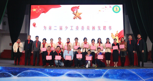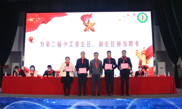少工委二届一次全委会后,大会闭幕式顺利召开。闭幕式上主持人宣布了学校少工委二届一次全委会的情况,随后大会为学校新一届少先队大队委授彩带、为第二届少工委主任、副主任及委员颁发聘书。