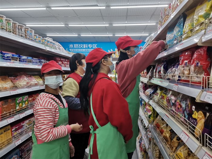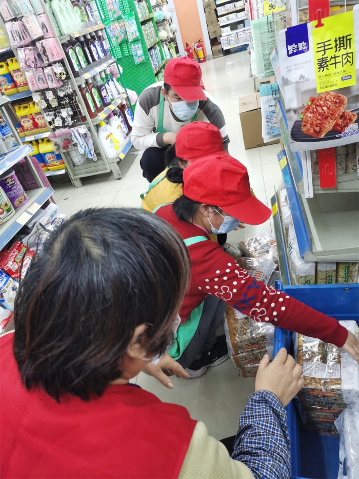 开始实习前,店长向师生们简要介绍了超市情况。老师根据学生的特点将学生分到收银组、清洁组和理货组。为了让所有学生体验到每个小组的工作,老师安排小组成员按时进行轮换。收银实习时,同学微笑着向顾客问好,同时熟练地操作收银系统,置禾超市收银员夸赞同学们“操作准确,学习能力强!”清洁实习时,同学们认真、细致地进行清扫,将货架底部也清洁干净。理货实习时,同学们认真听工作人员讲解摆货要求,并有条不紊地进行实操,令超市工作人员频频竖起大拇指。