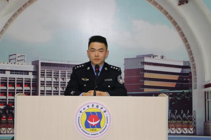 为广泛深入开展法制教育和安全教育,提高学生的法律意识和安全意识,预防校园暴力,推进依法治校,创建平安和谐校园,12月27日,市侨中法制副校长、中山市石岐区公安局法制室李军智警官、中山市公安局法制监管支队崔天亮警官莅临市侨中高中部,指导市侨中法制教育工作,为全体学生做法制安全讲座。市侨中德育处副主任景千瑞主持活动。