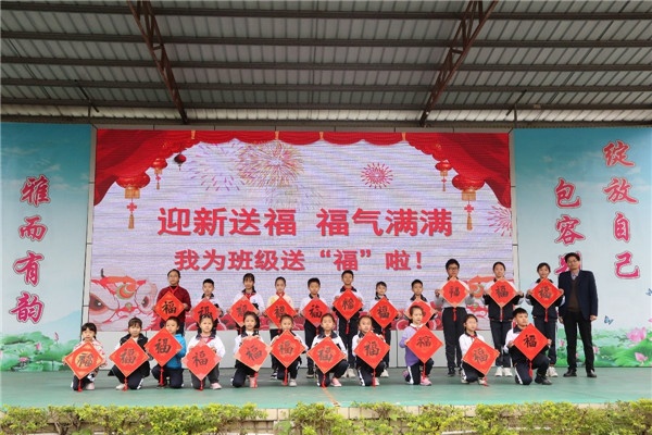 本次活动由吴高欣老师主持。首先,师生一起认真观看了视频《2021,了不起的你》,共同回味2021年那些独一无二的记忆,让人眼眶湿润、心潮澎湃。然后,由林宗技校长作新年致辞,林校长先向全体师生表达了最诚挚的慰问和最衷心的祝福,对师生们的年度表现进行了总结,他高度肯定了全校师生的辛勤耕耘,对师生们取得的累累硕果表示祝贺,并对即将到来的2022年提出了殷切的期望。接着,由五(3)班的梁颖怡、林伟烯两位同学带来了《挥别2021,展望2022》精彩的演讲,他们以声传情、声情并茂,展现了新时代少先队员对未来的美好憧憬。然后,四3班的同学们为每个班级以及所有老师送上用心用情书写的中国“福”,一个个“福”字饱含深深祝愿;学校全体行政为各班赠送了新年愿景卡,每个同学脸上洋溢着喜悦的笑容。紧接着,由德育处桂玉盛主任给全体师生进行安全教育,他从消防安全、交通安全、网络安全、防踩踏安全、防疫安全、防诈骗(拐骗)安全、食品安全等方面向大家提出了要求和建议,提醒全体师生在元旦放假期间要提高自我保护意识,时刻把安全放在首位。