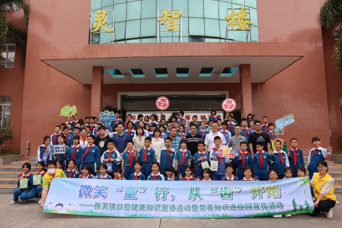 为更好地预防学生龋齿的发生,进一步强化中小学生对毒品危害的认识和重视,增强学生识毒、防毒、拒毒的意识和能力,促进学生健康成长,3月20日,板芙镇党建办、镇妇联、镇禁毒办、镇商会党支部、板芙医院党支部、中山市禁毒分会板芙镇办事处携手走进新联小学,为五年级师生开展了口腔健康知识宣讲暨禁毒知识讲座。参与本次活动的嘉宾有:板芙镇妇联主席周倩盈、镇教育与体育事务中心主任谢柳青、镇党群服务中心副主任黎燕爱、镇商会党支部书记任炼金、镇工商联(商会)轮值会长翟志明、板芙医院党委组织委员刘东胜和板芙镇禁毒社工们。