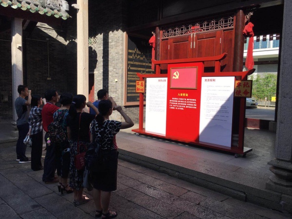 参观完展板后,全体党员教师在宗祠大门口集合,神采奕奕,在火红的党旗下紧握拳头,庄严地重温入党誓词。全体党员教师表示一定不忘历史,不忘初心,以革命前辈为榜样,做好教育教学工作,为党育人,为国育才。