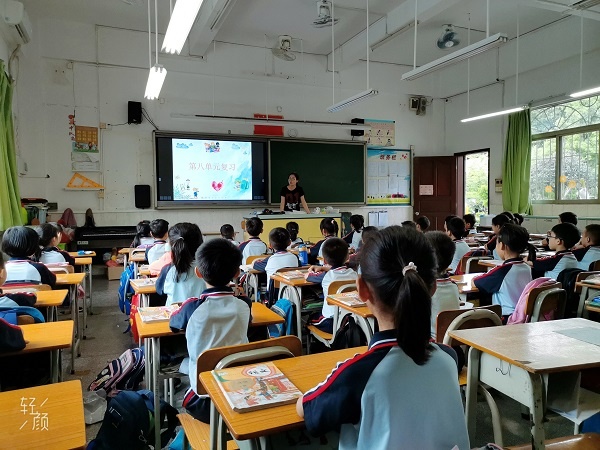 在第八单元复习课堂上,黄文慧老师对第八单元的内容进行梳理巩固,首先引导学生对本单元的基础字词进行复习、巩固;通过师讲生读,加深学生的对词语的理解;通过句子复习,了解到相关的写作手法,为写话打下一定的基础。课上黄老师精彩讲解、亲和细腻的教学风格获得在场所有老师认可与欣赏。