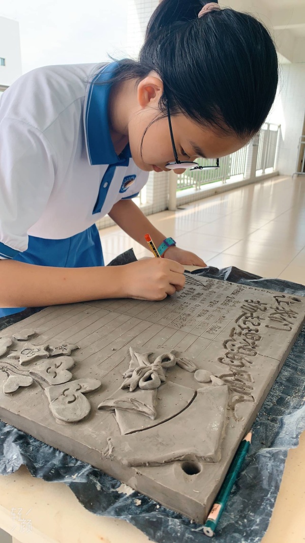 在开展陶板签名仪式前,每个班级已根据自己的班级特色和理念设计了一块感恩主题的陶板。有的班级以学校的美丽景色或花草树木为版面来歌颂和感恩学校;有的以老师辅导学生、帮助学生等元素歌颂师生情,感恩师长;有的以帆船遨游大海设计元素来表达对未来的憧憬;也有以人物的元素装饰板面表现七彩童年……每一块主题鲜明,装饰丰富,各有特色。签名活动中,孩子们在美术科组全体老师的指引下有秩序地排队,小心翼翼地在陶板上刻上自己的名字,为母校留下永恒的印迹,这对于师生来说是一次非常有意义的活动,让毕业充满了仪式感。