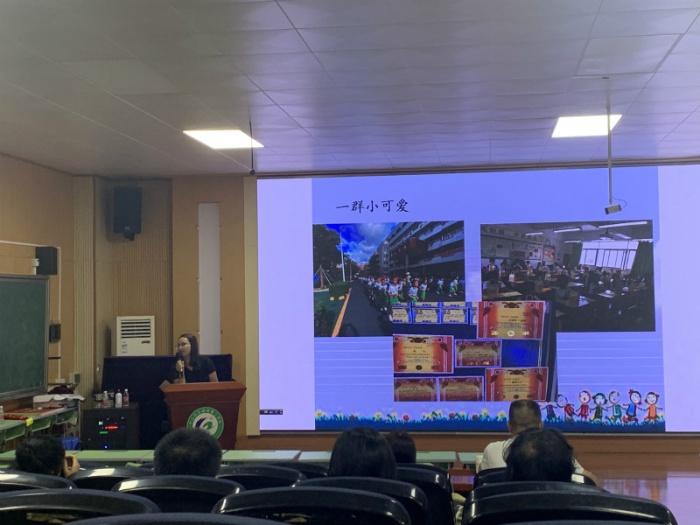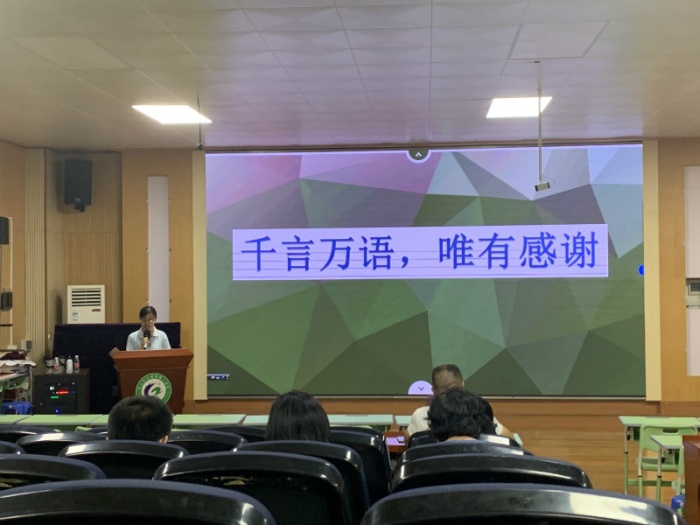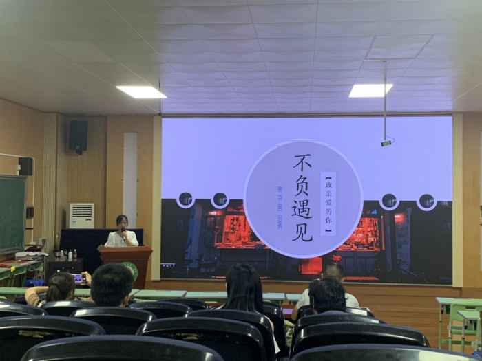 第一个分享的是林洋坤老师,她以《千言万语,唯有感谢》为题,PPT展示了这四年来林洋坤老师在本校的点点滴滴,介绍这四年来自己的成长经历,感谢学校各位领导和老师的关照,祝福各位良师益友,感恩当下;接下来是李纯洁老师的《不负遇见》,精美的PPT、简短的语言让人印象深刻,她 表示“生活不只有苦涩,还有很多糖果”。