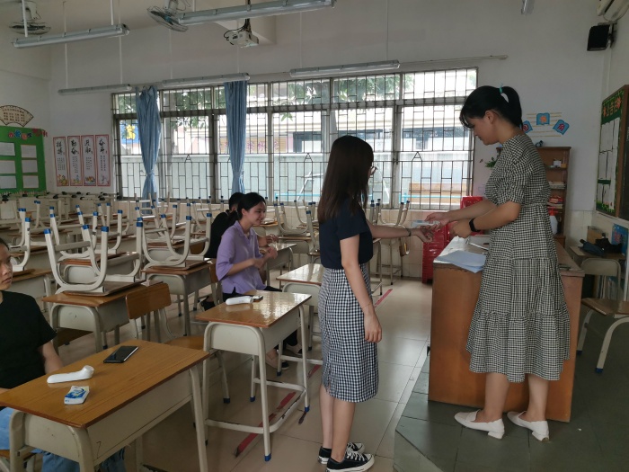 在教室内,如果教师发现或者学生自诉出现发热或者身体不适现象,教师将会对其进行体温测量,如果学生的体温超过37.3摄氏度,教师将会通过电话第一时间联系应急小组的成员。放学后各班教师对教室进行日常的消毒。