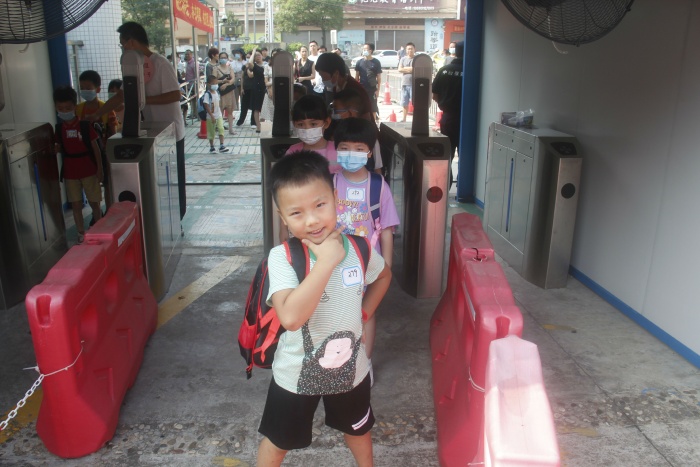 小宝贝们背着书包,经过大门的测温区,就可以进入到美丽的校园啦。校园内还设置了新生拍照区,之所以设置这样的迎新环节,是为了让孩子们知道自己将进入一段新的成长之路,正式成为一名真正的小学生。