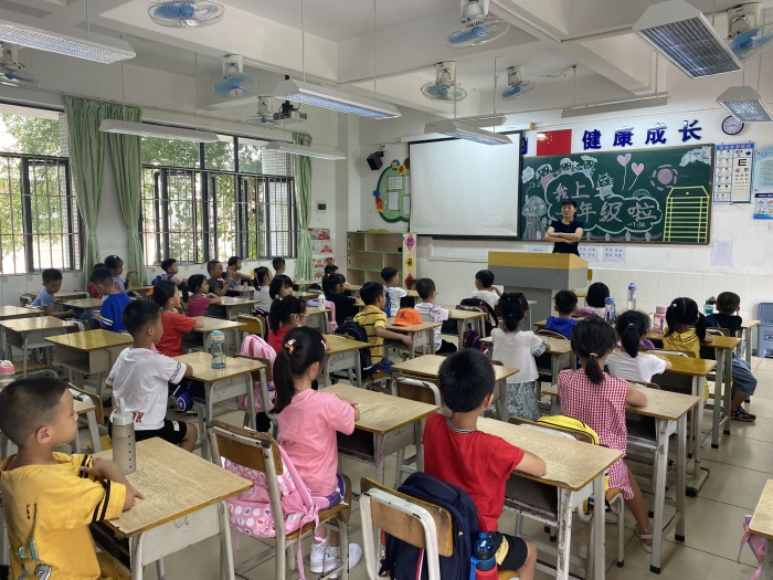 进入到班级后,就由各班班主任对孩子们进行一些常规的培训,教会他们认识学校和班级、以及一些课堂常规教育、队列训练等等。