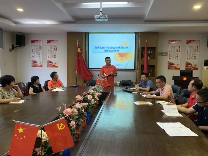 副校长吴文杰深入浅出地给全体教师讲述了疫情防控常态化的操作流程。在新学期里,全体教师共同努力奋斗,再创曹步中学新的辉煌,同时希望疫情早日结束,世界和平,祖国母亲繁荣昌盛!