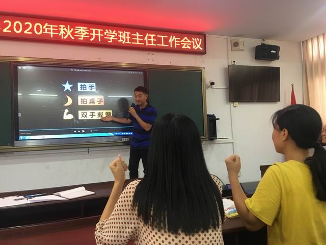 德育主任蔡海雄以游戏的方式的方式给班主任会议拉开序幕,让班主任在开学繁忙的工作中舒展笑脸,释放压力。