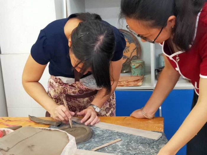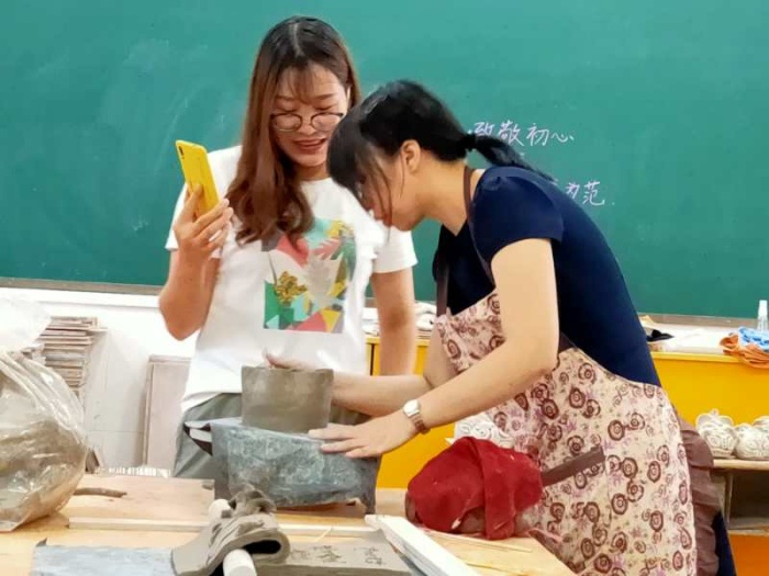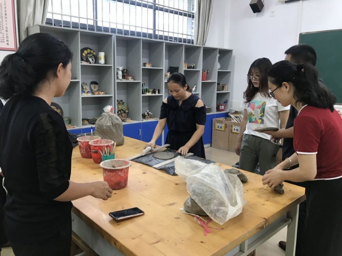 打印 |为了促进跟岗教师与镇南美术教师的学习交流,使他们得到更好、更快的成长与发展,镇南小学为跟岗教师制定了有层次、有梯度、有实效的学习计划和任务。9月7日,镇南小学陶艺教师为跟岗教师开展了制陶学习活动。